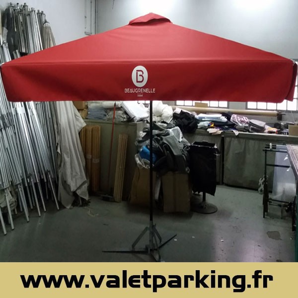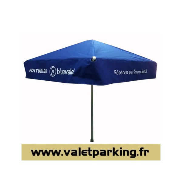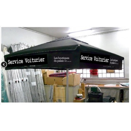 LOCATION PARASOL VOITURIER ALUMINIUM NOIR AVEC BAS VOLETS AVEC MARQUAGE PERSONNALISE - STANDARD 160X160 CM